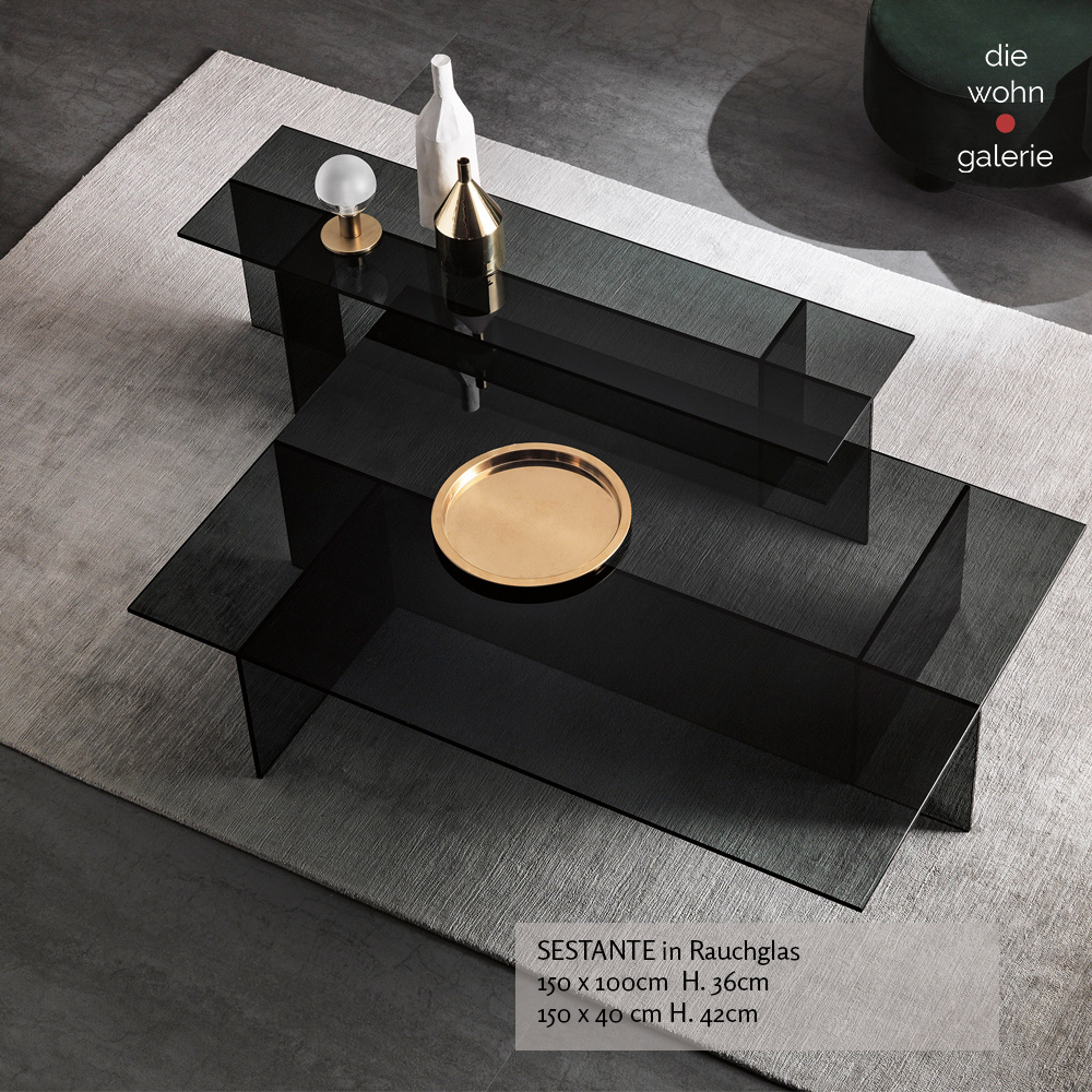Der Design Glas Couchtisch SESTANTE besticht durch eine moderne geradlinige Form in neuen extravaganten Glasvarianten