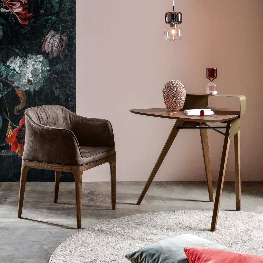 Durch die Kombination von Holz mit den aktuellen Trendfarben Rosa agata und Stone bronze wird dieser Tisch im modernen Design zum Hingucker. Weitere durchdachte Details, wie der herausnehmbare Handspiegel oder die zusätzliche Ablagefläche aus lackiertem Metall, machen diesen Schminktisch so liebenswert. Ohne den Spiegel ist der Tisch durchaus als kleiner Schreibtisch zu verwenden, denn ein kleines Homeoffice findet hier allemal Platz. Wie auch immer Sie sich entscheiden, mit dem Schminktisch NIPPER holen Sie sich ein besonders schönes Möbel ins Haus.