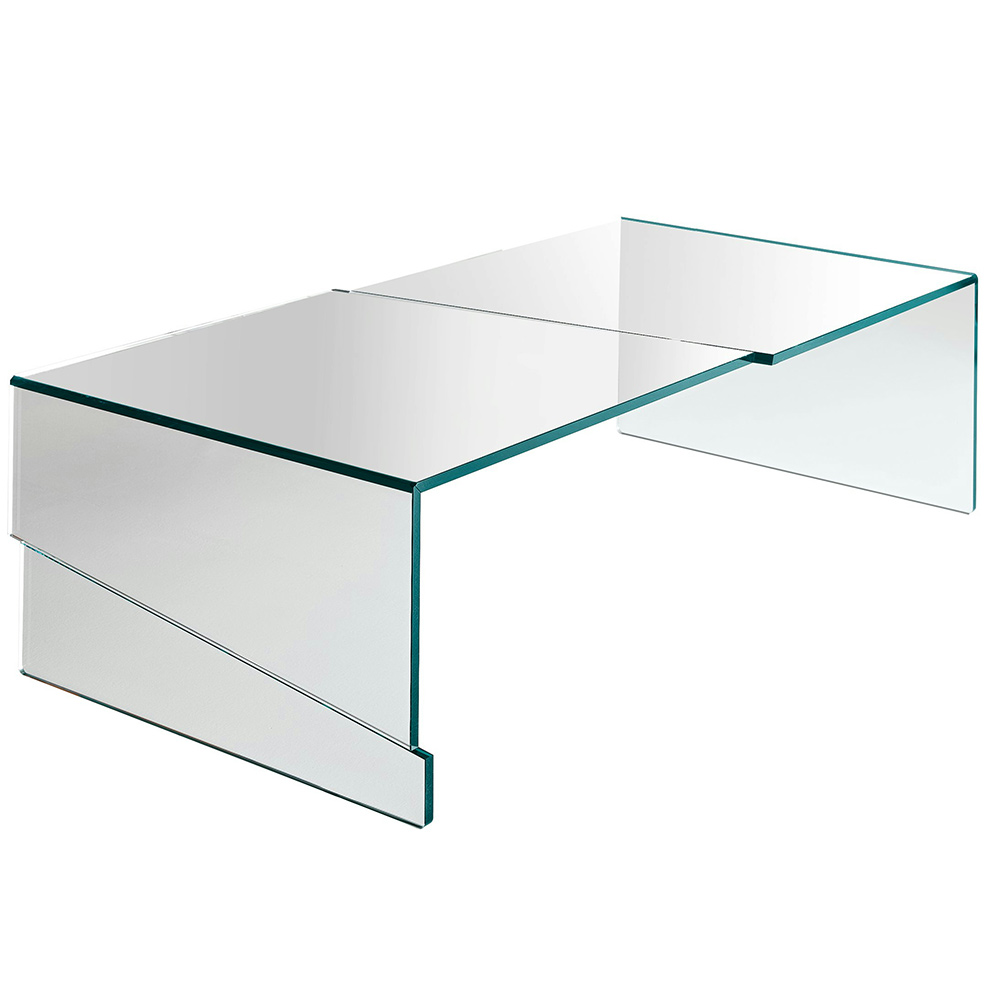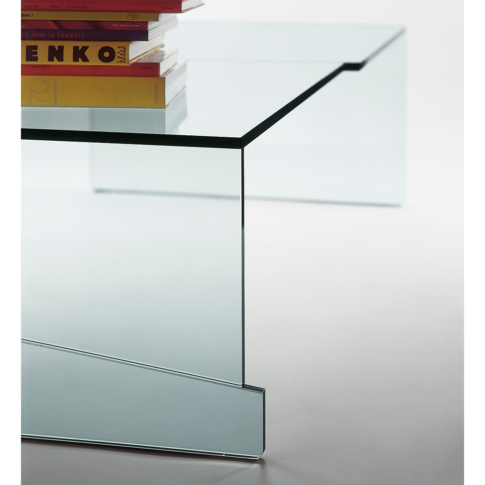Im Glascouchtisch STRAPPO wird Glasverarbeitungskunst und italienisches Design auf höchstem Niveau vereint. Für diesen raffinierten Glascouchtisch werden mehrere Glasplatten versetzt zueinander versetzt UV-verklebt, dies erzeugt einen sehr interessante Effekte.